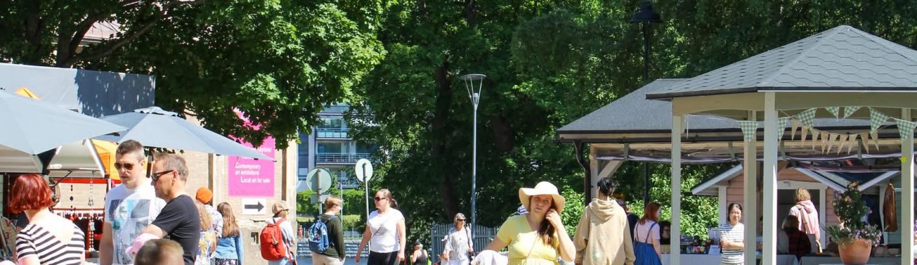 Tallipihan kesäkausi pyörähtää käyntiin. Pihalla vierailevia myyjiä, kädentaitajia ja pikkuputiikin pitäjiä. Myynnissä käsitöitä, designia ja herkkuja.