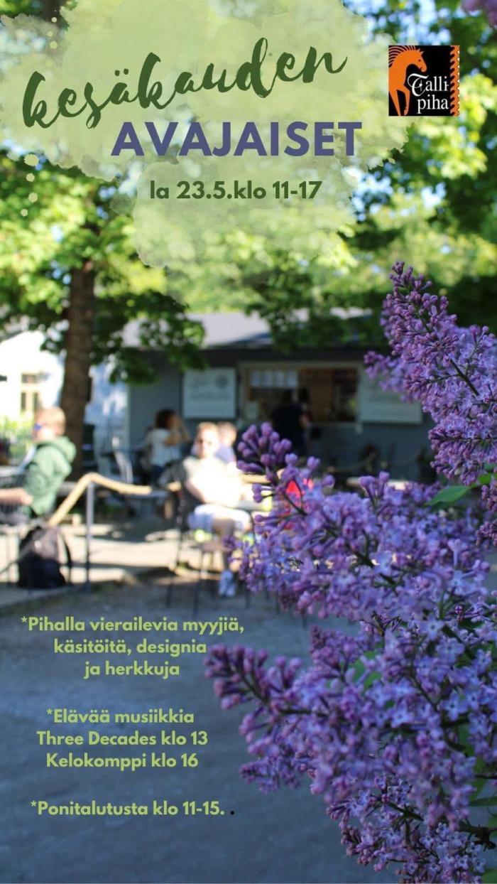 Tallipihan kesäkausi pyörähtää käyntiin. Pihalla vierailevia myyjiä, kädentaitajia ja pikkuputiikin pitäjiä. Myynnissä käsitöitä, designia ja herkkuja. Lapsille kasvomaalausta, pomppulinna, talutusratsastusta ja paljon muuta kivaa!