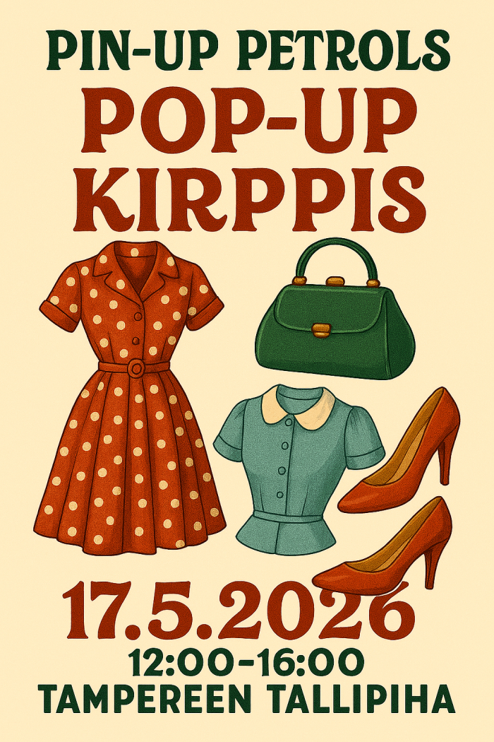 Järj. Suomen Pin-up- ja vintageharrastajien yhdistys Pin-up Petrols ry ja myynnissä on yhdistyksen jäsenten tuotteita.